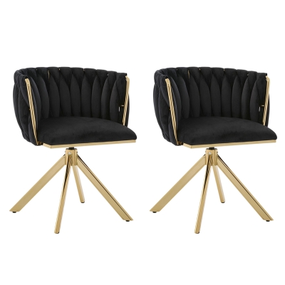 Set aus 2 Velours-Drehstühlen, 180°-Schwenkfunktion, Ergonomische Rückenunterstützung, 56 x 50 x 70 cm, Schwarz