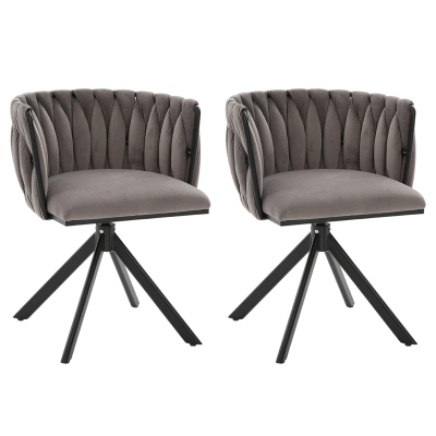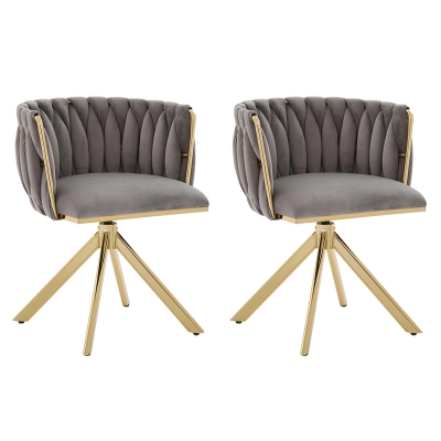 Set aus 2 Velours-Drehstühlen, 180°-Schwenkfunktion, Ergonomische Rückenunterstützung, 56 x 50 x 70 cm, Grau
