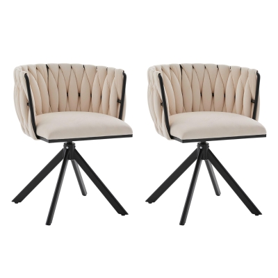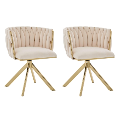 Set aus 2 Velours-Drehstühlen, 180°-Schwenkfunktion, Ergonomische Rückenunterstützung, 56 x 50 x 70 cm, Elfenbein